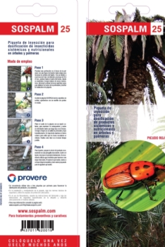 SOSFIRST Injection cannula for systemic products and nutrient supply of palm trees SOSFIRST 25: Designed for palm trunk of large diameter SOSFIRST 15: Designed for palm trunk of lesser diameter Both products come in packs (12 units box) or in bulk (50 units box) |